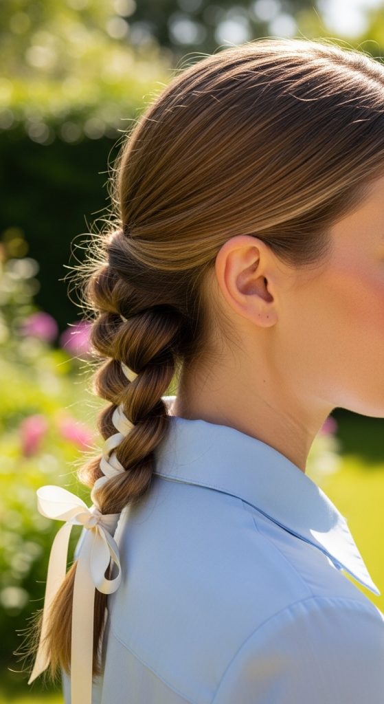 10. Ribbon-Tied Low Braid