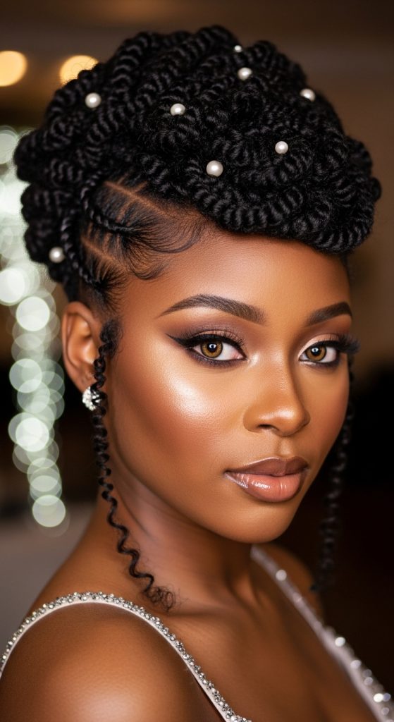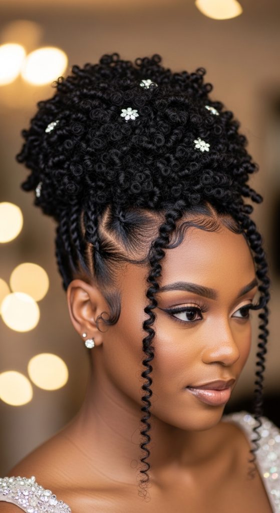 One of the biggest advantages of prom updos for Black women is their ability to work beautifully with natural hair textures. Coils, curls, and kinky textures can add stunning dimension and structure to updo styles. Instead of trying to hide natural texture, many modern prom hairstyles celebrate it. Textured buns, twist updos, braided crowns, and sculpted natural styles allow you to embrace the beauty of your hair while creating a sophisticated look.