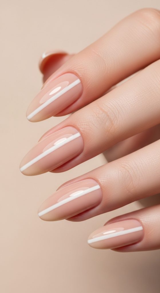 Thin stripe designs look modern and chic while taking very little time. A single vertical or horizontal line over a nude base adds elegance without requiring detailed artwork.