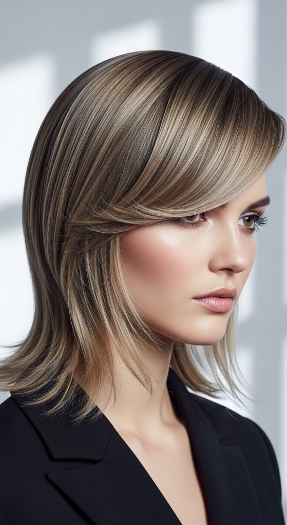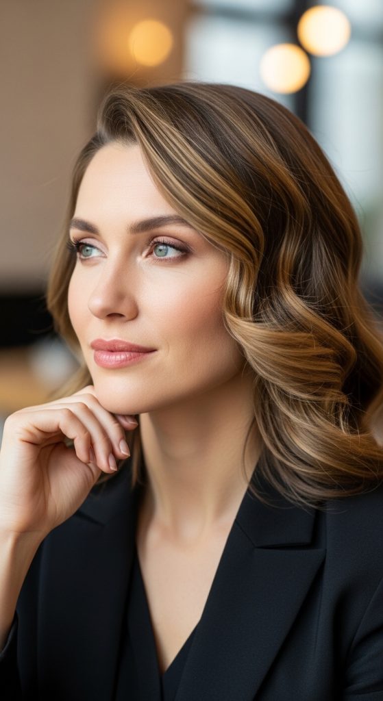 A side part instantly adds lift and elegance, making this hairstyle soft and flattering.