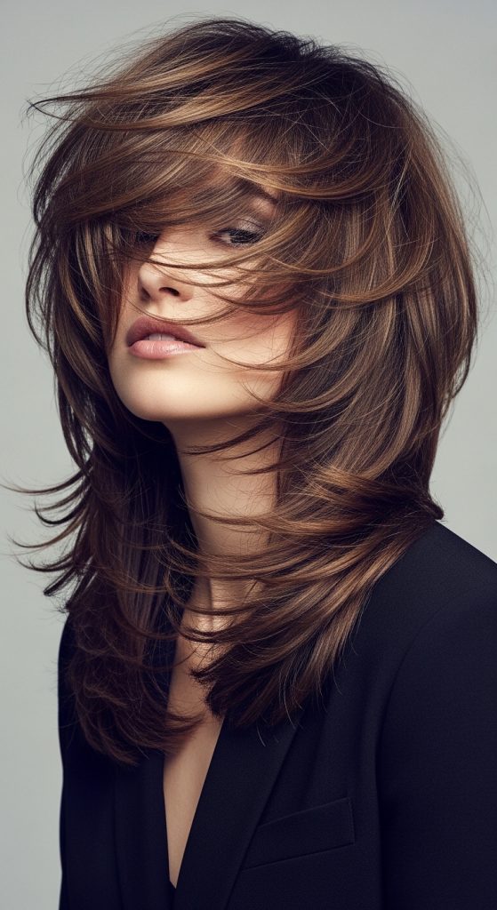 Choppy layers and soft fringe create movement and volume.