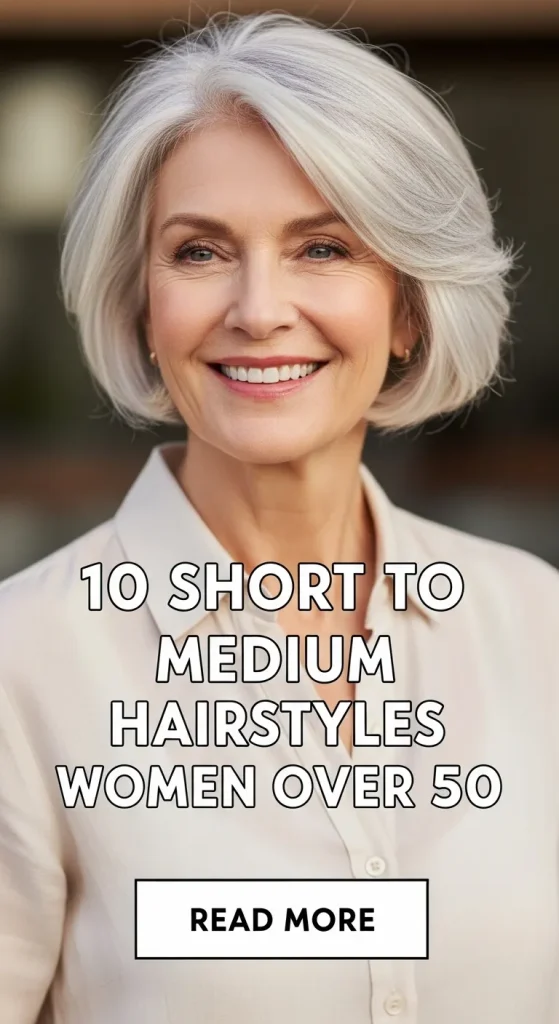 Short to medium hairstyles are some of the most flattering and practical choices for women over 50. They offer the perfect balance between manageability and styling versatility — long enough to create movement and softness, yet short enough to maintain healthy volume and easy daily care. On Pinterest, these hairstyles consistently trend because they look modern, polished, and effortlessly stylish without requiring complicated routines.
