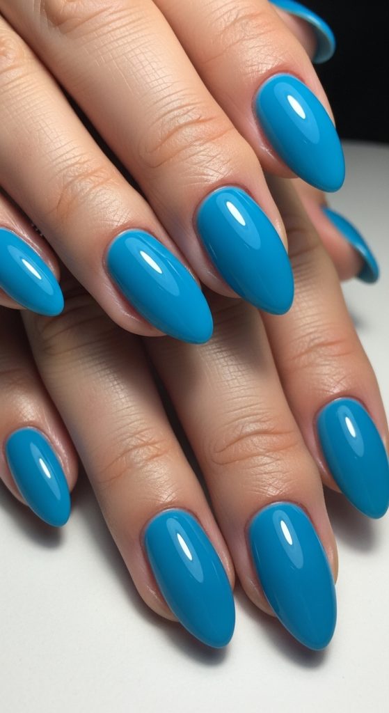 Electric blue nails feel refreshing and bold, reminiscent of clear summer skies and ocean water. This color adds a cool contrast to warm summer days.