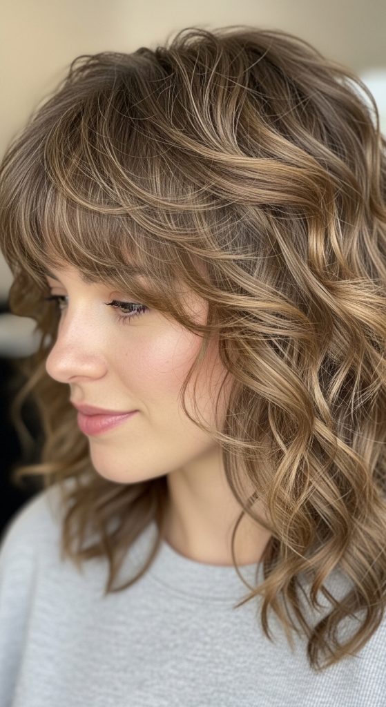 10. Textured Curls with Bangs