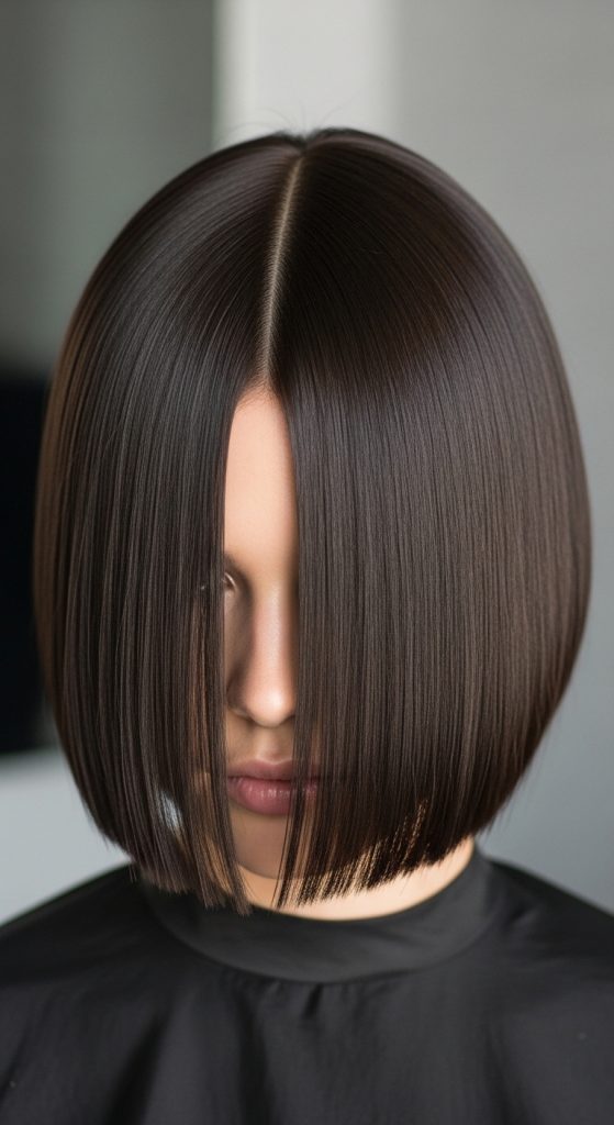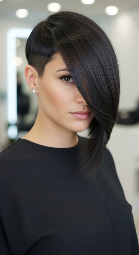 An asymmetrical bob is bold, modern, and perfect for girls who want to stand out. One side is slightly longer than the other, creating a stylish look.