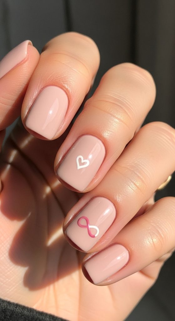This design feels personal and meaningful. It is perfect for those who want a discreet nod to Valentines Day without obvious themes. Neutral nails also complement any outfit or style.